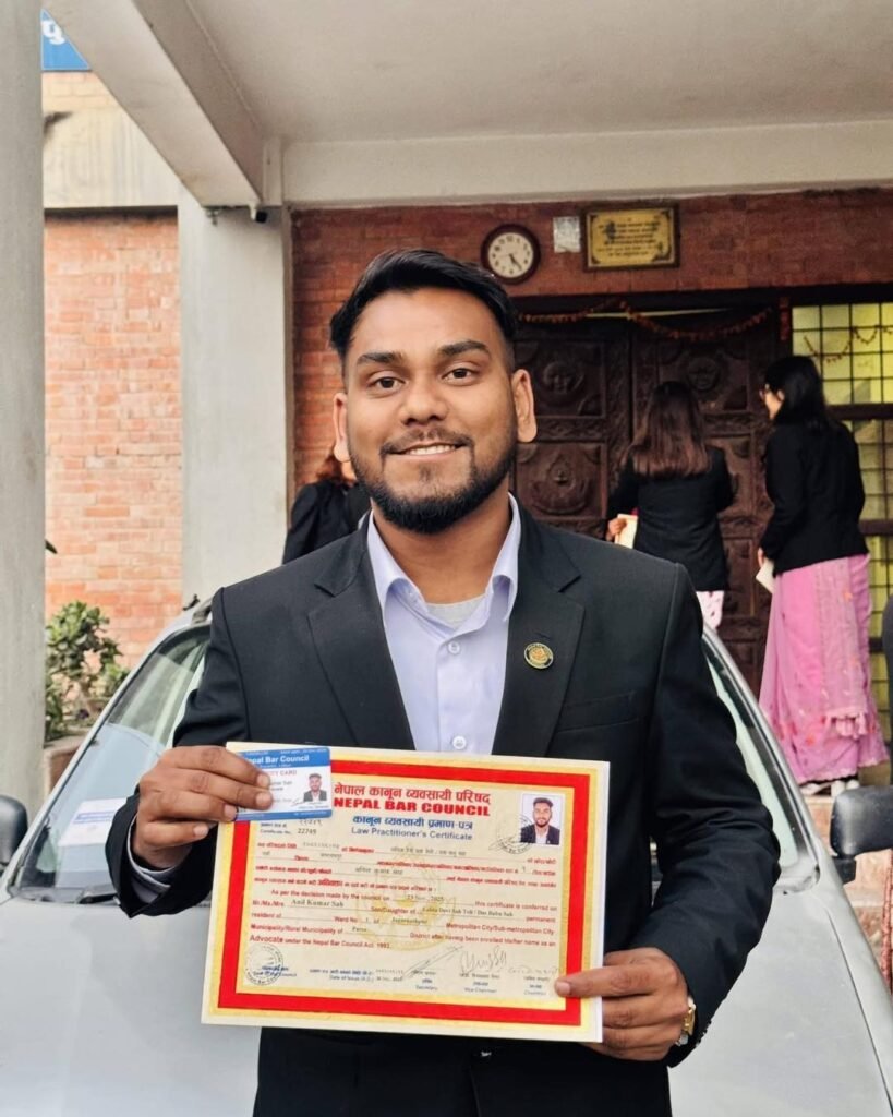 पर्सा जिल्ला स्थायी बासिन्दा अनिल कुमार साहले अधिवक्ताको अनुमति पत्र प्राप्त गरेसँगै समाजप्रतिको उत्तरदायित्वलाई आत्मसात् गर्दै आर्थिक रूपमा कमजोर तथा विपन्न नागरिकहरूको मुद्दा नि:शुल्क रूपमा लड्ने घोषणा गर्नुभएको छ।