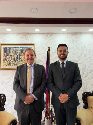 शिक्षामन्त्री पोखरेल र बेलायतका राजदूतबिच शिष्टाचार भेटवार्ता